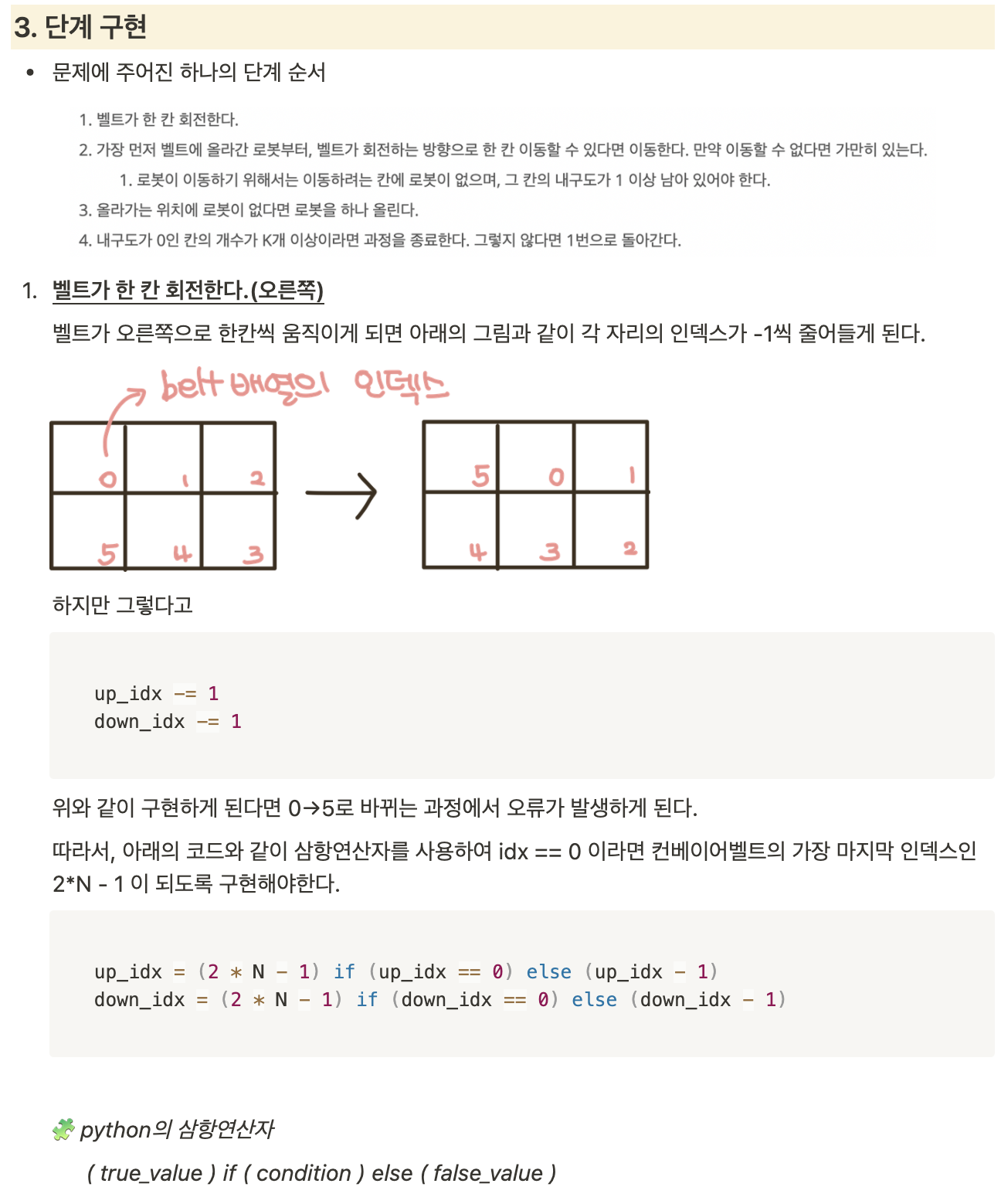 if (robot[up_idx] == 0) and (belt[up_idx] > 0):