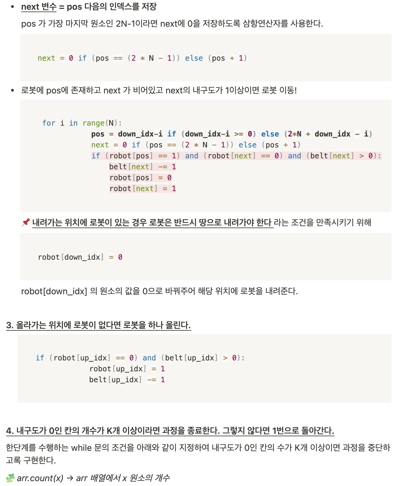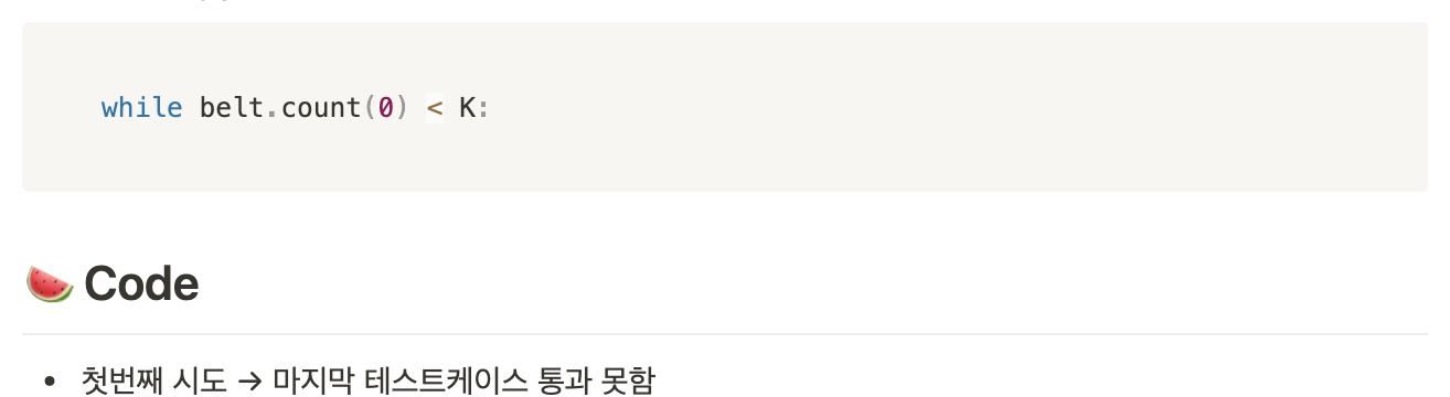 while belt.count(0) < K: # 내구도가 0인 벨트가 K개 이상이면 끝
