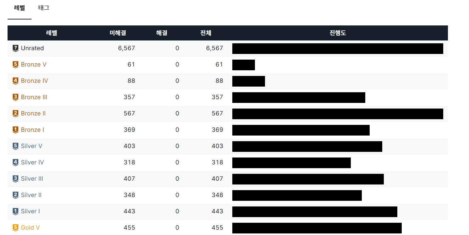 solved.ac의 레벨순서는 bronze, silver, gold, platinum, diamond, ruby로 이루어져 있습니다.