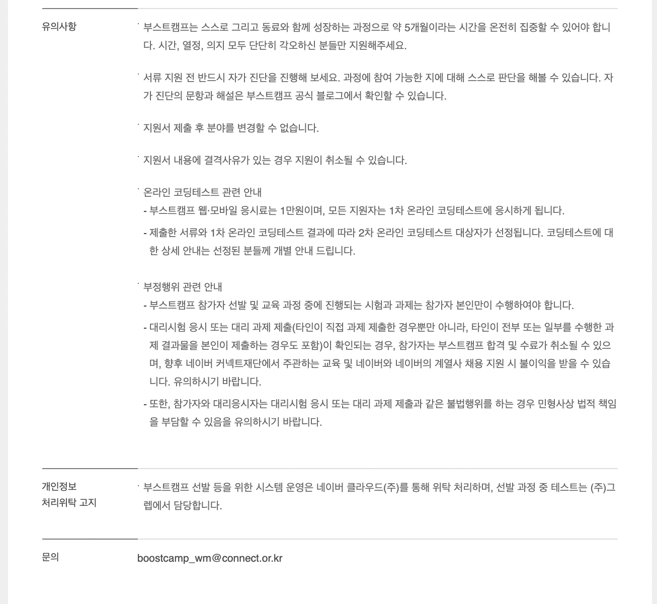 부스트캠프는 제출한 서류와 1차 코딩테스트 결과를 통해