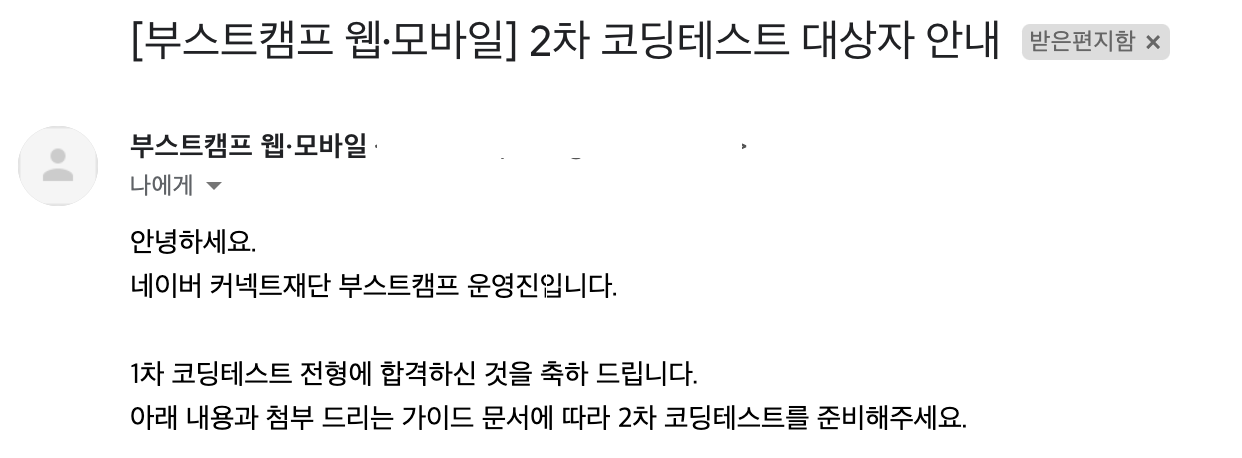 2차 코딩테스트 대상자 메일과 함께 2차 코딩테스트에 접속할 수 있는 링크가 있는 메일을 추가로 받았습니다.