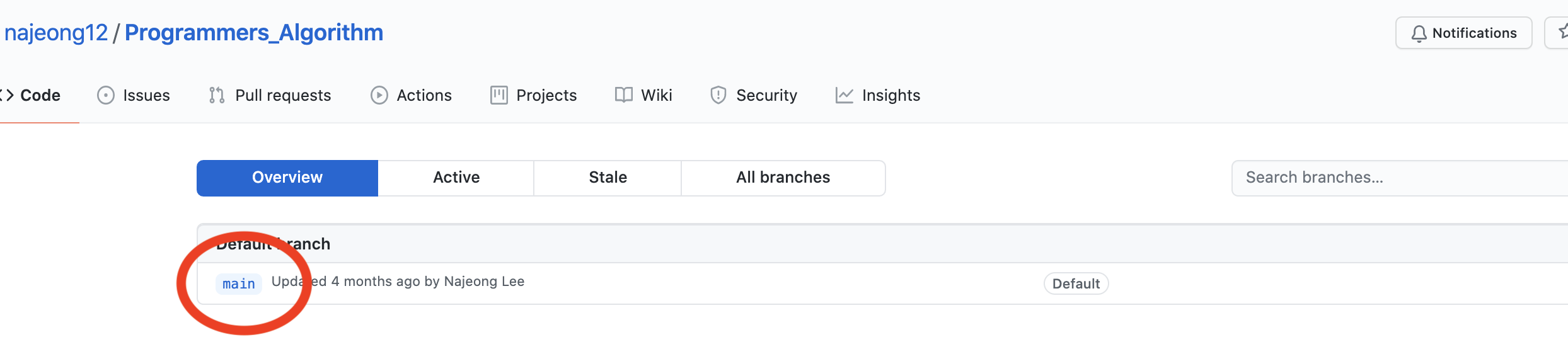 따라서 아래의 방법과 같이 현재 브랜치의 이름을 확인한 다음