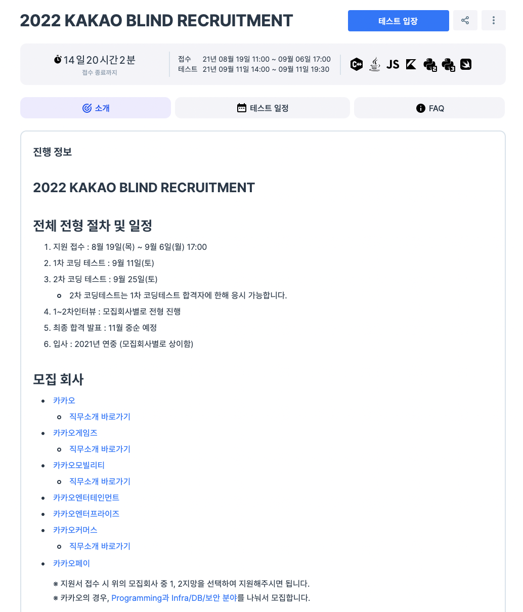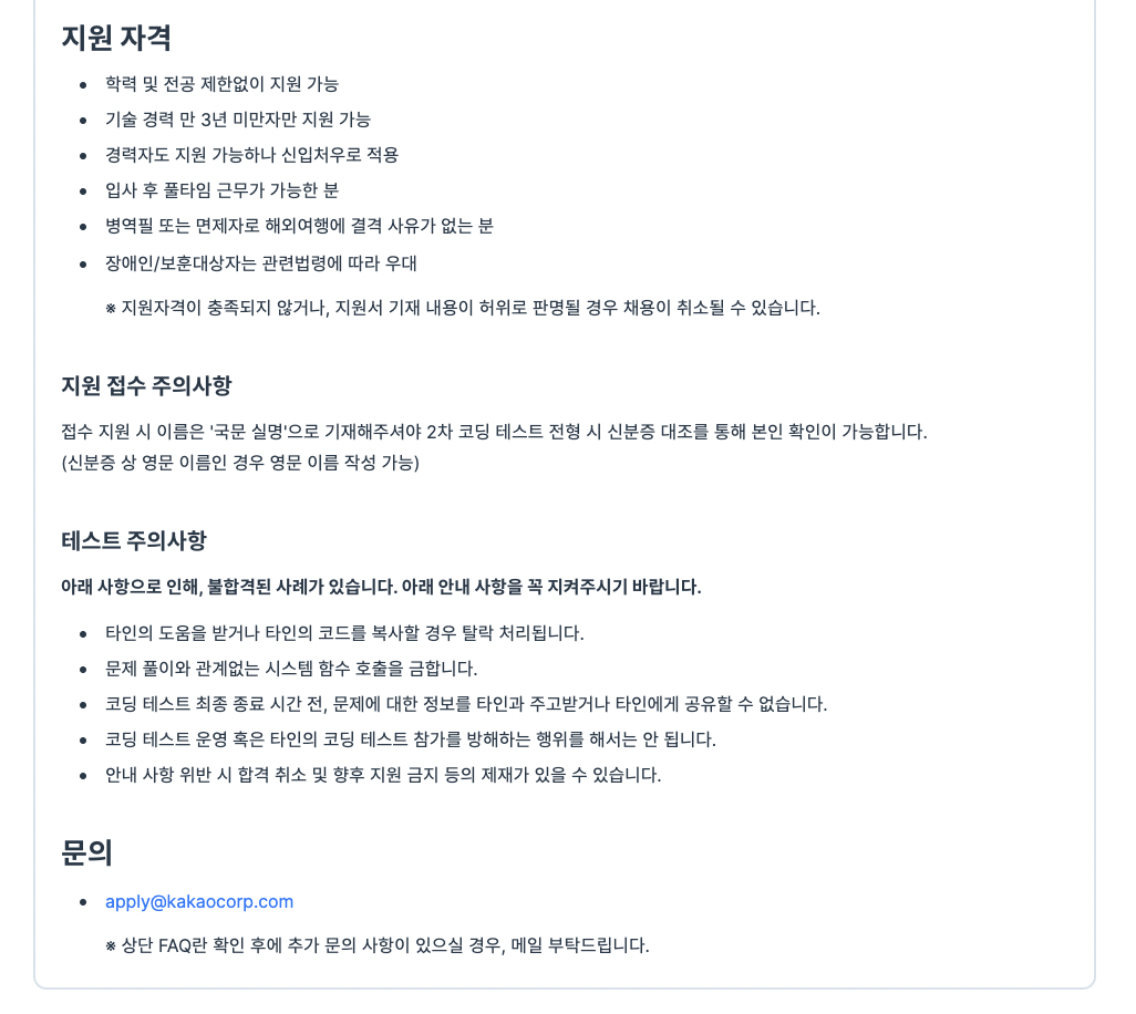 코로나로 인해 공채가 별로 없는 요즘 카카오에서 너무나 소중한 신입공채 블라인드 채용을 해주었습니다 😀