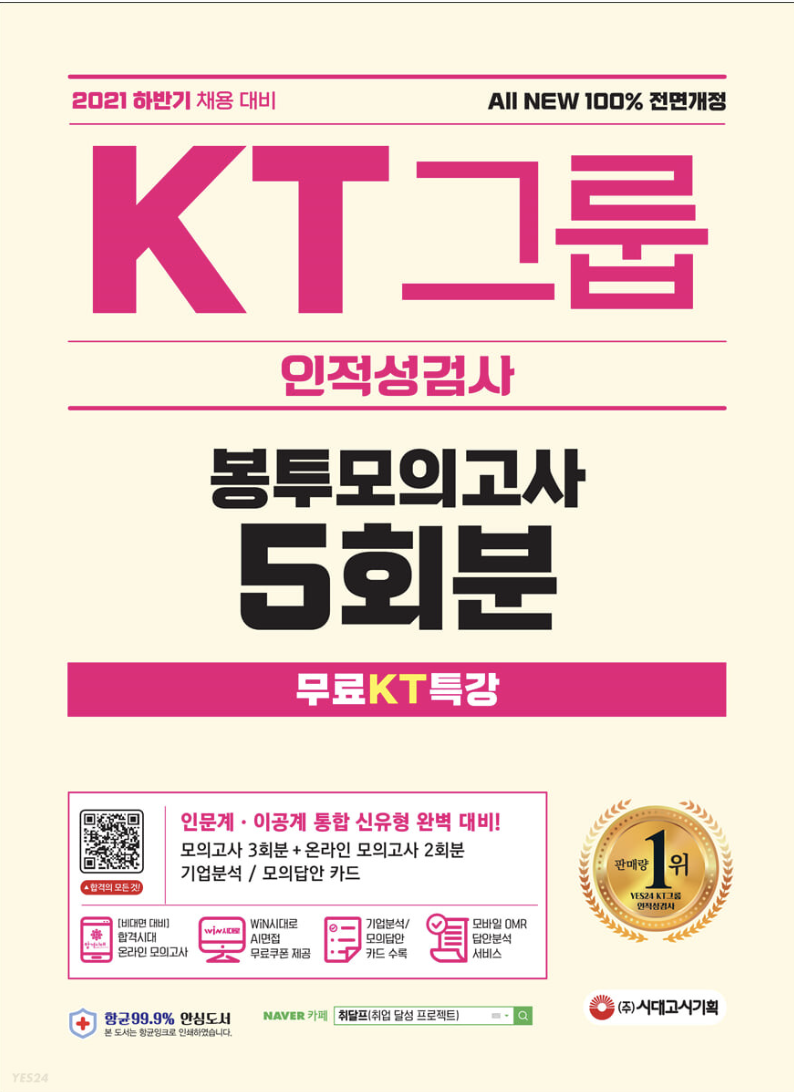 저는 [KT 그룹 인적성 검사 봉투모의고사 5회분] 책을 사서 인적성을 준비했습니다.