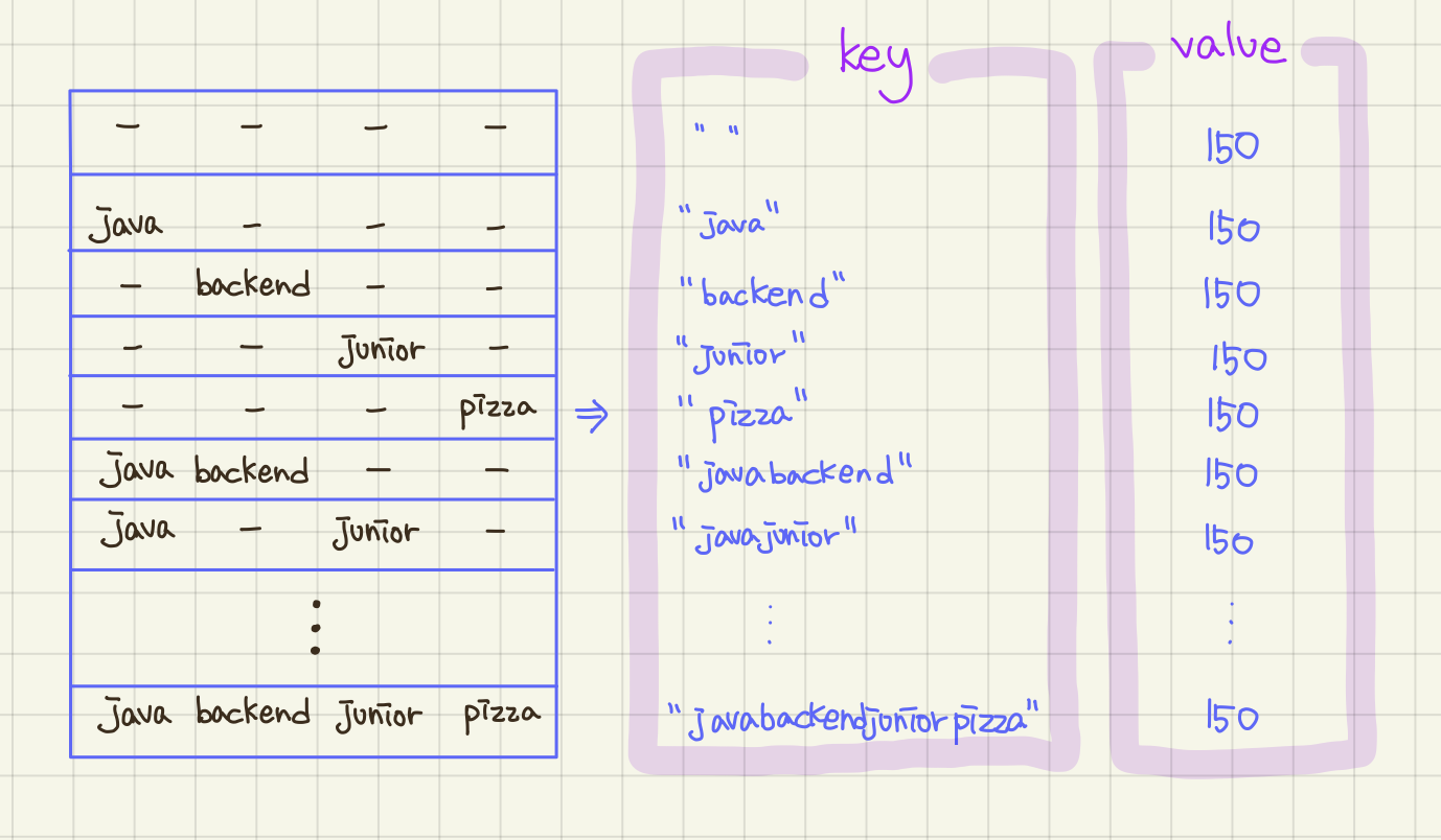 info 가 "java backend junior pizza 150" 일때 통과할 수 있는 query 들은 아래와 같이 계산할 수 있습니다.