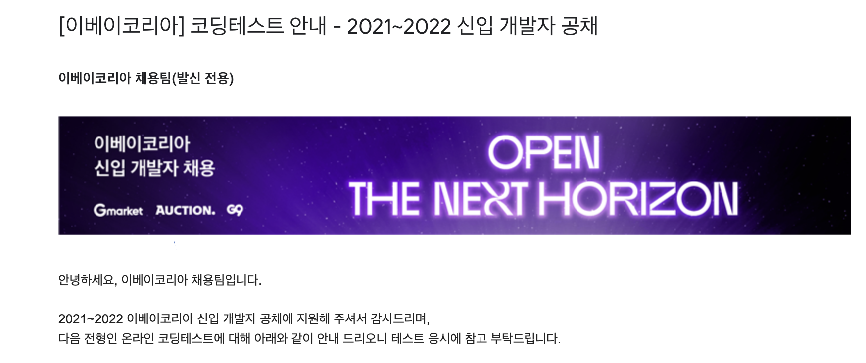 서류 발표는 따로 없었고 서류를 제출한 모두에게 코딩테스트의 기회가 주어졌습니다!