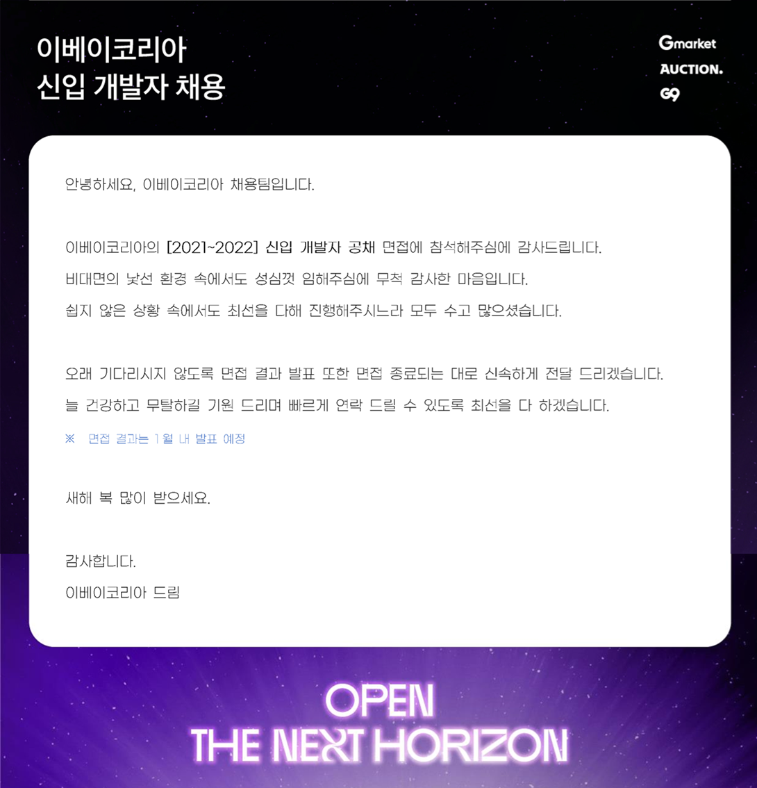 면접이 끝나고 그날 오후 6시반에 위와 같은 메일도 왔습니다 ㅎㅎ (지원자들에 대한 배려를 많이 해주고 있다는 것을 느낄 수 있었습니다! )