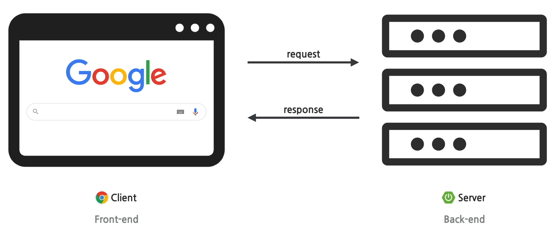웹 페이지는 클라이언트(프론트엔드)와 서버(백엔드)사이의 요청과 응답으로 동작한다